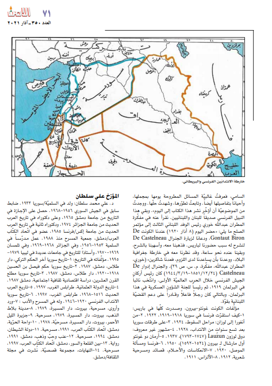 الحلقة العاشرة من دراسة د. لويس صليبا من سايكس بيكو إلى لبنان الكبير تضمّنت وثائق وخرائط نادرة تنشر لأول مرة ومنها خريطة نادرة وضعها الجيش العثماني 1915 وتُظهر توزّع الطوائف والإتنيات في لبنان وسوريا وفلسطين وتبيّن أن اليهود كانوا يومها أقلّية صغيرة. نشرت هذه المقالة مجلّة الأمن-بيروت عدد350. أذار 2021 (ص64-71)