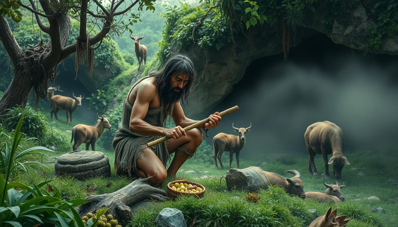 كانَ الانساُن عِملاقاً ضَخْماً، ” مع بدءِ مسيرةِ الأرضِ بالتَحَوُّلِ والتَطوُّرِ ، تقدّمَ الإنسانُ وتَدَرّجَ إلى صَيْرورَتِه. فَغَرَقَتْ قاراتٌ وَظَهَرَتْ أُخرى ، وَلَمْ تَزَلُ الأرض في حَركةٍ داءِمَةٍ ، تَمشي جَنبا إلى جنبٍ مع تَسيارِ الإنسانِ إلى صيْرورَتِه.