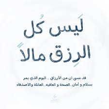 *بل إن من أجمل الأرزاق سكينة الروح ، ونور العقل ، وصحة* *الجسد ، وصفاء القلب ، وسلامة الفكر ، ودعوة أم* ، *وعطف أب ، ووجود أخ* ، *وضحكة ابن ، واهتمام صديق ، وصحبةرفيق ودعوة مُحب*…..