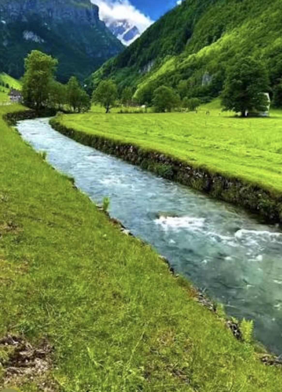 لمّا بَلَغتُ نَهرًا جارِيًا ، سِرتُ بِمُحاذاتِهِ فَسَرَحتُ أتَأمّلُ في هذا الوجودِ الفَسيحِ المُتَوَازِنِ، لا شيءَ يَخرُجُ عن طّبيعَةِ الوجودِ ، وَميزانُ الأعمالِ المُزدَوِجِ الكَفَيْنِ ، بينَ سَلبيّةٍ وَإيجابِيّةٍ ، قانونُها واحِدٌ : نَتَاءِجُها تَصدرُ عن مُسَبَّباتِها !