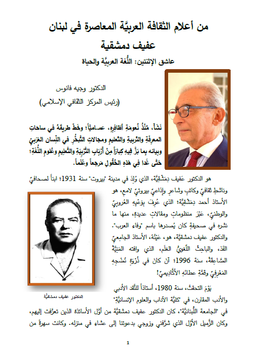 عفيف دمشقية الدكتور وجيه فانوس (رئيس المركز الثقافي الإسلامي) شاركها Facebook Twitter Stumbleupon LinkedIn Pinterest